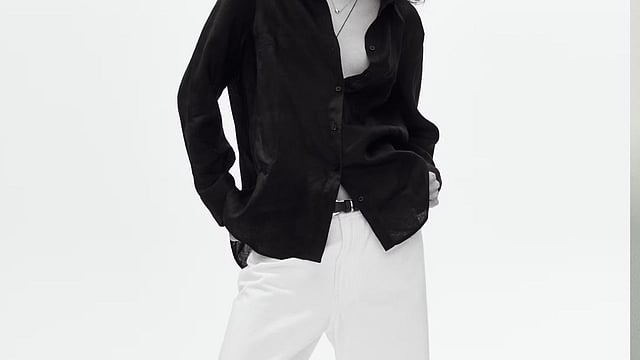 This linen shirt is available in black and dark brown.