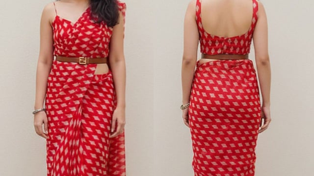 Light, breezy and belted, this easy red saree is perfect for everyday style.