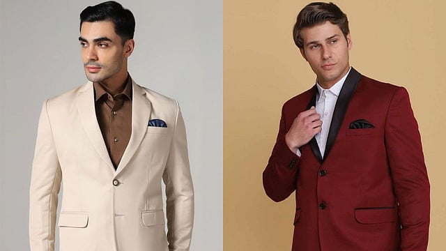 If you prefer a clean look, this solid formal suit is a good choice. The blazer features a shawl collar that looks very elegant. It has a single-breasted design with double button closures. The slim-fit trousers come with four pockets for your essentials. It gives a very sharp silhouette for evening parties.