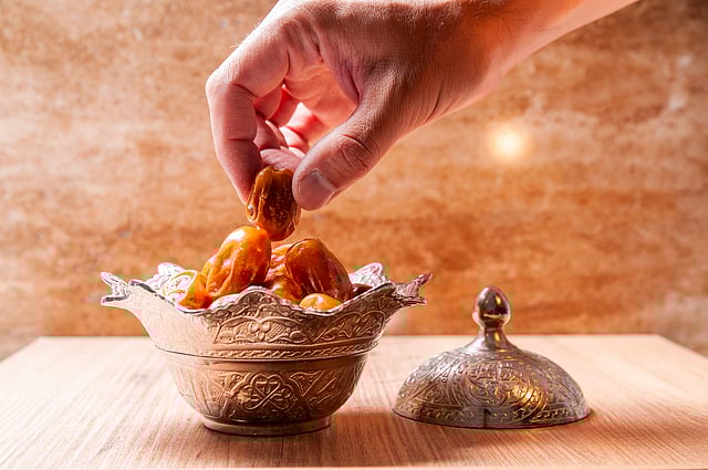 Don't give in to tempting feasts at iftar. Start with 3 dates and water, which is a tradition too. Follow with soup, salad, grilled lean meats like chicken or fish, and whole grains like brown rice or quinoa.2