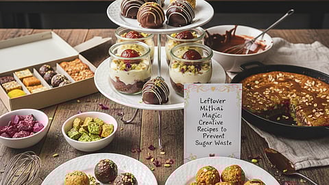 The abundance of assorted mithai during festivals is a major source of food waste, as high-sugar, milk-based sweets spoil quickly and contribute to organic landfill methane. The solution is to proactively transform these leftovers into new, stable desserts. The article provides three zero-waste culinary hacks: solid, khoya-based sweets (barfi/peda) can be crumbled and rolled into no-bake truffles with cocoa and nuts. Syrupy gulab jamuns can be chopped and folded into cheesecake batter, using the syrup as a glaze. Finally, rasgulla can be mashed with low-sugar fruit preserves to create a compote. This approach maximizes food utility and makes sustainable feasting delicious.